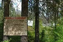 The Cariboo region of British Columbia was ravaged by the Mountain Pine Beetle in which Stanley lies. In 2005, the beetle kill trees were harvested around the Stanley cemetery and area for the safety of the visitors and to reduce the threat of forest fire. In the process of logging the beetle kill trees, the fencing surrounding the Stanley cemetery and some of the individual burial plots where damaged by the fallen trees. The damaged fencing was not repaired afterwards. In 2007, some minor restoration work was done to the area fencing.