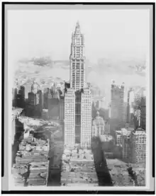 The company was seated at 37 Park Row, and later at 261 Broadway, and finally at 361 Broadway.[15] A few years before his father's death, in 1915, they moved the headquarters to the famous Woolworth Building in Manhattan at 233 Broadway, one of the first skyscrapers, and the tallest building in the world at the time. The building had been finished in 1913, two years earlier, and Nikola Tesla had moved in by 1914.[15][16]