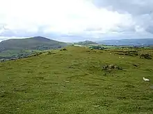 The hill is home to the Mitchell's Fold stone circle. Along the path leading from the Fold across Stapeley Common stand the Cow Stone (a single standing stone or menhir) and the Stapeley Hill Ring Cairn. There are two Bronze Age cairns at or near the summit; such round cairns are also a common feature of Welsh mountain summits.
