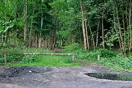 After hostilities had ceased in late 1945, the woods were bought by the newly formed Forestry Commission.[1] Along with much woodland in the River Trent valley, the site was extensively replanted in the 1950s with Scots and Corsican pine, chosen to supply local industry.[3]