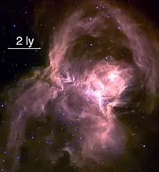 - ↑ Hainich, R.; Rühling, U.; Todt, H.; Oskinova, L. M.; Liermann, A.; Gräfener, G.; Foellmi, C.; Schnurr, O.; Hamann, W.-R. (2014). "The Wolf-Rayet stars in the Large Magellanic Cloud". Astronomy & Astrophysics. 565: A27. arXiv:1401.5474. Bibcode:2014A&A...565A..27H. doi:10.1051/0004-6361/201322696. S2CID 55123954.