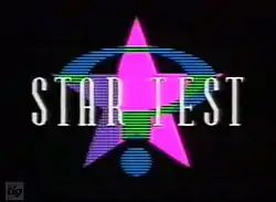 Star Test is a British TV programme that ran from 4 April 1989 to 17 March 1991 on Channel 4.[2] The show took an interview format, in which the guest "star" was seated facing directly to camera, questioned by an unseen voice (Kara Noble).[3] The topics discussed were chosen from an on-screen menu, after which the interviewee selected questions by number from an unseen list.[4] The show was lampooned in two British comedy sketch shows; French and Saunders and Bo' Selecta!, the latter being some 12 years after Star Test ended.