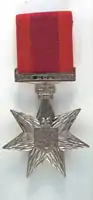 The Star of Courage (SC) is a bravery decoration awarded to Australians.[1] It is awarded for acts of conspicuous courage in circumstances of great peril. The SC was created on 14 February 1975.[4] The decoration recognises acts of bravery by members of the community.[4] They selflessly put themselves in jeopardy to protect the lives or property of others.[1] It is ranked second in the Australian civil bravery decorations in the Australian Honours System. Recipients of the Star of Courage are entitled to use the post-nominal letters "SC".[1]