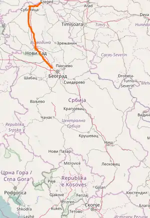| 10001 | 4.679 km (2.907 mi) | 4.679 km (2.907 mi) | Hungary – Serbia border (Horgoš 2) – Horgoš ( |