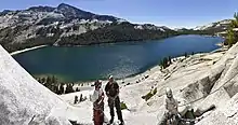 Tenaya Lake and climbers on Stately Pleasure Dome