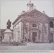 The statue of De Vilhena at the parade ground of Fort Manoel, where it stood from 1736 to 1858, in a 1856 photograph by James Robertson