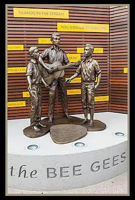 A statue of the Bee Gees has been erected at 109 Redcliffe Parade, Bee Gees Way, Redcliffe, Queensland, 4020 Australia.[1] It was unveiled on 14 February 2013 by Barry Gibb, the only surviving member of the group.[1] It was created by sculptor Phillip Piperides.[1]