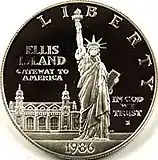 The Statue of Liberty commemorative coins are a series of commemorative coins which were issued by the United States Mint in 1986,[1][2][3] the 100th anniversary of the dedication of the Statue of Liberty (formally Liberty Enlightening the World).