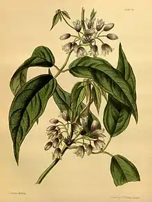 Stauntonia latifolia (syn. Holboellia latifolia Wall.) is a perennial ornamental plant in the family Lardizabalaceae.