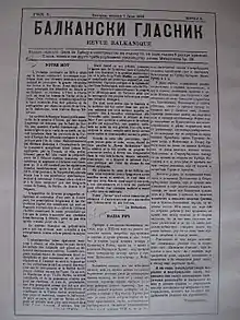 In the program of the new capital newspaper "Balkan" (5 April-4 May 1903) is written: "It will protect the autonomy of Macedonia for the Macedonians and the independence of the Balkans for the Balkan people". The twelve issues were edited by A. S. Vasilev and Stefan Dedov (Yakimov). They provide information about the Turkish violence in Macedonia, the Serbian and Greek propaganda carried out there. The newspaper is printed by B. Zilber, Iv. K. Bozhinov and Yanko S. Kovatchev.