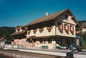 Steg railway station, also known as Steg im Tösstal railway station, is a railway station in the Swiss canton of Zurich. The station is situated in the municipality of Fischenthal and takes its name from the nearby village of Steg (Töss Valley). It is located on the Tösstalbahn between Winterthur and Rüti ZH