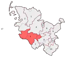 Steinburg – Dithmarschen Süd (English: Steinburg – Dithmarschen South) is an electoral constituency (German: Wahlkreis) represented in the Bundestag. It elects one member via first-past-the-post voting. Under the current constituency numbering system, it is designated as constituency 3. It is located in central western Schleswig-Holstein, comprising the Steinburg district, the southern part of the Dithmarschen district, and part of the Segeberg district.[1]