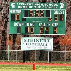 The Steinert High School Spartans[2] compete in the Colonial Valley Conference, which is comprised of public and private high schools in the Mercer County area and operates under the supervision of the New Jersey State Interscholastic Athletic Association.[11] With 920 students in grades 10–12, the school was classified by the NJSIAA for the 2019–20 school year as Group III for most athletic competition purposes, which included schools with an enrollment of 761 to 1,058 students in that grade range.[12] The football team competes in the Valley Division of the 94-team West Jersey Football League superconference[13][14] and is classified by the NJSIAA as Group IV South for football for 2022–2024, which included schools with 893 to 1,296 students.[15]
