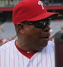 He moved to the Tampa Bay Devil Rays organization in 1996, serving as hitting coach during their inaugural 1998 season and from 2006 to 2009, making the first trip of his baseball career to the post season in 2008. He was relieved of his duties as hitting coach of the Tampa Bay Rays on October 5, 2009.[9] Henderson joined the Philadelphia Phillies in 2010 as an outfield/baserunning coordinator, and he spent 2011 and 2012 as the organization's hitting coordinator. On October 4, 2012, he was promoted to hitting coach for the major league team.[10] He was fired by the Phillies after the 2016 season.[11]