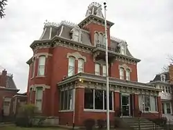 Stewart-Studebaker House, also known as the John Studebaker Residence, is a historic home located at Bluffton, Wells County, Indiana. It was built in 1882, and is a two-story, Second Empire style red brick dwelling topped by a slate mansard roof. It features a Mansarded tower above the main entrance.[2]