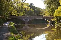 The Stewart Avenue Bridge is a historic structure located in Mason City, in the north-central part of the U.S. state of Iowa. The span carries North Carolina Avenue over the Winnebago River for 116 feet (35 m).[2] This span replaced bowstring arch-truss bridge at this residential location. The Iowa State Highway Commission had the plans completed by November 1913, although the city did not petition the county to have it built until February 1914. N.M. Stark and Company of Des Moines had the low bid at $12,775, which included the removal of the old bridge.[2] Charles Smith provided the fill for the bridge, which opened in August 1914. It was listed on the National Register of Historic Places in 1998.[1]