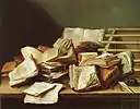 Still life with letter board | Samuel van Hoogstraten | 1667 | Staatliche Kunsthalle Karlsruhe | 54 | |