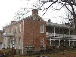 Built in 1835,[1] it is a brick structure with a stone foundation and a shingled roof; its architecture is a mix of the Federal and Greek Revival styles.[2] The house is composed of two portions: the front, which Hezekiah Stites constructed in 1835, and the large rear wing, which Hezekiah's son Charles added in 1867. The original section is Federal except for its Greek Revival entrance portico: it features typical Federal chimneys and attic windows on the gabled ends, and it is largely free of ornamental elements otherwise. Conversely, the rear wing includes components such as a Victorian porch.[3]