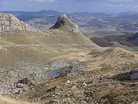 Stožina is a peak in the Durmitor mountain range in northern Montenegro. At 1,908 m (6,260 ft),[1] it is not among the highest peaks in the range, but due to its iconic shape and location, it has become a well-known symbol of the area and the Durmitor National Park.