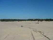 Stockton Beach is located north of the Hunter River in New South Wales, Australia. It is 32 km (20 mi) long and stretches from Stockton, to Anna Bay. Over many years Stockton Beach has been the site of numerous shipwrecks and aircraft crashes. In World War II it was fortified against a possible attack by Imperial Japanese forces.[1] During that time it served as a bombing and gunnery range as well as a dumping area for unused bombs by aircraft returning from training sorties.[2] The length of the beach, its generally hard surface and numerous items of interest along the beach make it popular with four-wheel drive (4WD) enthusiasts. Four-wheel drive vehicles are permitted to drive on Stockton Beach provided the vehicles are in possession of valid permits.[3] The beach is also popular with fishermen and several different varieties of fish may be caught.[1][2]
