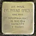 HERE LIVED DR. BRUNO SPITZER BORN 1909 DEPORTED 1942 TO THERESIENSTADT MURDERED IN RAASIKU |