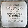 HERE LIVED EMIL SCHLING BORN 1881 DEPORTED 1942 TO THERESIENSTADT MURDERED IN MALY TROSTENETS |