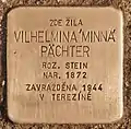HERE LIVED VILHELMINA 'MINNA' PÄCHTER NÉE STEIN BORN 1872 MURDERED 1944 IN THERESIENSTADT |