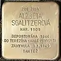 Alžběta Sgalitzerová b. Schubertová, also Elisabeth, was born on 7 August 1909. Her parents were Dipl. Ing. Carl Schubert (1861-1950) and Odilia b. Sternberger (1887-1942). She was married to Dr. Ing. Bedřich Sgalitzer. The couple are said to have at least two children whose fate has not been resolved. Alžběta Sgalitzerová and her husband were deported to Theresienstadt concentration camp in 1942, where they were imprisoned in the small fortress. Bedřich Sgalitzer was murdered there on 24 November 1944. Alžběta Sgalitzerová died on January 5, 1945.[29][30]