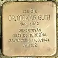Otokar Guth was born on 9 May 1882 in Lety. His parents were Leopold Guth and Wilhelmine. He graduated and married Hermína b. Hellerová. The couple had at least one daughter, Anna, born September 24, 1916. The last place of residence of the couple before deportation was in Prague I, Celetná 12. On July 5, 1943, the two were deported with Transport De from Prague to the Theresienstadt concentration camp. Their transport numbers were 538 and 539 of 604. On 14 August 1943 Dr. Otokar Guth was murdered by the Nazi regime in Theresienstadt. The official cause of death was heart failure.[14]