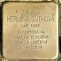 Hermína Guthová b. Hellerová, also Herma, was born on 23 July 1885. She married Dr. Otokar Guth The couple had at least one daughter, Anna, born on September 24, 1916. The last freely chosen address of the couple before deportation was in Prague I, Celetná 12. On July 5 in 1943, the two were deported by transport De from Prague to the Theresienstadt concentration camp. Their transport numbers were 538 and 539 of 604. On 14 August 1943 her husband was killed in Theresienstadt. Over a year later, on 23 October 1944, Hermína Guthová was deported and transported to Auschwitz concentration camp with Transport Et and murdered there. Their transport numbers were 1,158 from 1,714.[15][16]