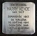 Harry Kende was born on 24 March 1927 in České Budějovice. On the 18 April 1942 he was deported in the wake of Transport Akb, Nr. 222 from České Budějovice to Theresienstadt concentration camp. From there, he was deported to Auschwitz concentration camp on 28 September by transport EK, Nr. 586. Later on he was brought to Flossenbürg concentration camp where he was murdered on 8 March 1945. The stumbling block is located in front of his former school building. Moreover, Vilém Kende (1883–1944) who was most likely Harry Kende's Uncle and his wife Valerie Kendeová (1888–1944) were also murdered in Auschwitz.[1][2][3][4]