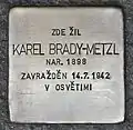 Karel Brady-Metzl was born in Třeboň on 28 May 1898, as the oldest son of Emilie and Ludwig Metzl. He had six siblings. His uncle and aunt Adolf and Karoline Brandt adopted two children Karel and Hedvika from Karolines' Sister Emilie, due to the incapability of having children themselves. In 1927 he married Markéta Dubská. The couple had a small retail business and a gas station in Nové Město na Moravě, where they were the only Jewish family. Karel and Markéta Brady-Metzl had two children - Jiří (born in 1928) and Hana (born on 31 May 1932). In 1939 Karel was denounced and arrested by the Gestapo. He was sent to prison in Jihlava for two months. In March 1941 Markéta was arrested and deported to Ravensbrück concentration camp. On 23 November 1941 Karel was arrested again. His children were brought to the Theresienstadt concentration camp in May 1942. Karel was transferred to Auschwitz concentration camp on 11 June 1942, where he was murdered on 14 July 1942.