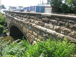 The Stone Arch Bridge is a bridge in Danville, Illinois, which carries U.S. Route 136 (US 136; East Main Street) across Stony Creek. The segmental arch bridge is 92 feet (28 m) long and built with sandstone. The bridge was built in the 1890s to facilitate Danville's expansion during an industrial boom. As various geographic and political limitations prevented the city from expanding in any directions but east and southeast, the city grew over Stony Creek, necessitating a new bridge. Mayor John Beard commissioned the bridge; during the 1890s, Beard and political rival John Cannon clashed over many issues, and Beard most likely built the bridge to demonstrate his political effectiveness. The bridge is the only segmented arch bridge remaining in east-central Illinois and is one of five stone arch bridges in the region.[2]