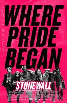 Stonewall is a 2015 American coming-of-age drama film directed by Roland Emmerich, written by Jon Robin Baitz, and starring Jeremy Irvine, Jonny Beauchamp, Joey King, Caleb Landry Jones, Matt Craven, Jonathan Rhys Meyers, and Ron Perlman. The film is set in and around the 1969 Stonewall riots, a violent clash with police that sparked the gay liberation movement in New York City. Released on September 25, 2015, by Roadside Attractions, it received largely negative reviews.