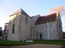 The church, standing on a hillside overlooking the village, is of late Saxon or early Norman origin.[3] Built around 1050, the church was restored around 1850. The Trinity Episcopal Church of Stoughton Massachusetts, USA received a stone from the ribbing in the old church's chancel area as a gift in 1935, presented to then Rector Marshall. It was placed in the floor of the pulpit. The restoration of some of its outer walls was at the behest of Elizabeth Killick, a naval engineer who was the first woman to become a fellow of the Royal Academy of Engineering.[4]