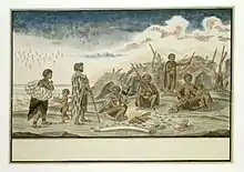 Most Strandloper communities did not persist in the face of demographic and economic changes occurring in southern and south-western Africa during the 19th and 20th centuries, and disappeared through assimilation.[1] The only tribe still distinguishable from their assimilating neighborhood are the Topnaar of the southern Namib who in 2005 consisted of around 500 members, distributed over 12 small settlements along Kuiseb River in central Namibia.[2] Although the other communities have disappeared, archaeological evidence of their existence remains in the form of middens containing seashells, pottery and the bones of whales and seals, as well as ash and charcoal.[1]