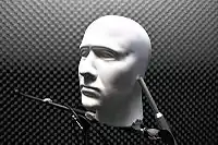 Dummy head being used for binaural recording, similar to the setup used for Street Hassle