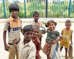 India has an estimated one hundred thousand or more street children in each of the following cities: New Delhi, Kolkata, and Mumbai.[2] Mainly because of family conflict, they come to live on the streets and take on the full responsibilities of caring for themselves, including working to provide for and protecting themselves. Though street children do sometimes band together for greater security, they are often exploited by employers and the police.[3][4]
