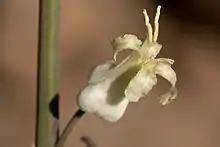 Streptanthus carinatus, the lyreleaf jewelflower,[2] is an annual to biennial plant in the mustard family (Brassicaceae) found in the Arizona Upland of the Sonoran Desert.[3]:48 Subspecies S. carinatus arizonicus has white to cream colored flowers in its western range, becoming strongly yellow eastward.[3]:48 Subspecies S. carinatus carinatus has purple flowers.[3]:48
