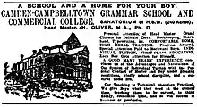 It became Camden Grammar School until 1933 when it was sold to Arthur Gregory, a Hollywood movie mogul. Gregory, a keen golfer, commissioned construction of a nine-hole golf course, later adding another nine holes.[1] A few decades later it was transformed into an art deco playground for the sales manager of 20th Century Fox. During World War II it was resumed as the Eastern Command Training School for the army.[11][1]