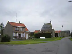 There were two important Belgian positions north of Diksmuide. Dodengang, a system of trenches where the Belgian and German armies were only meters away, was just north of Diksmuide, on the Yser. Next was Onze-Lieve-Vrouwehoekje ("the little corner of Mary"), at Out-Stuivekenskerke, a little over 1 kilometer from the Yser; because of the flooding, this had become an island.[1] This important Belgian outpost ("The Great Guard South") was manned from December 1914 to May 1915 by the artillery observer Edouard Lekeux (Aarlen, 1884 - Luik, 1962[4]), a reserve lieutenant and a Franciscan minorite, who moved to the Goemaere family farm after German artillery had leveled the church tower.[5] A plaque in his honor was put up in 1963 in Oud-Stuivekenskerke.[4] The Germans retreated from the area on October 15, 1918.[1]