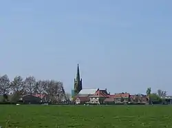 The first mention of the place name is from 1219; it says "parochia de Stuvinskerke in loco qui Vatha dicitur" ("the parish of Stuvinskerke in the place called Vate"). The "-kerke" ending indicates that the name can only have come into existence after the Christianization of the area, after the 11th century.[2] The name supposedly comes from the Germanic "Stuvinas karika", or "Stuvin's church". Similar to other polder parishes, the name then comes from a local landowner, who founded a church and named it for himself.[3]