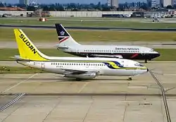 The aircraft involved in the accident was a Boeing 737-2J8C, c/n 21169, registered ST-AFK.[2] Powered by two Pratt & Whitney JT8D-7 engines, it had its maiden flight on 29 August 1975, and was delivered new to Sudan Airways on 15 September 1975.[2][3] At the time of the accident, the aircraft was almost 28 years old.[1]