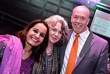 Sue Hammell (middle) with Rachna Singh and John Horgan, 2017