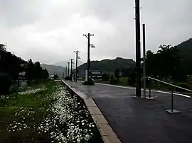 Sugaya Station is served by the Ban'etsu East Line, and is located 49.9 rail kilometers from the official starting point of the line at Iwaki.[1]