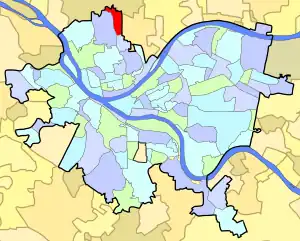 1. 1 2 "PGHSNAP 2010 Raw Census Data by Neighborhood". PGHSNAP Utility. Pittsburgh Department of City Planning. 2012. Retrieved 28 June 2013.