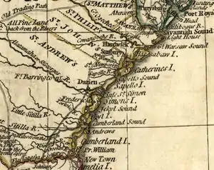 1776 map of coastal Georgia showing Sunbury and Saint John's Parish
