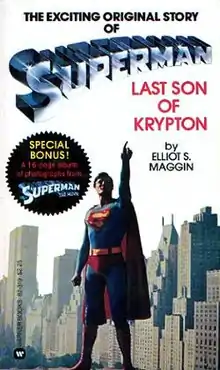 Superman: Last Son of Krypton is a novel written by Elliot S. Maggin and based on the DC Comics character Superman. It was published in 1978. The novel was published as a tie-in to the release of Superman: The Movie, with an image of Christopher Reeve on the cover and (in its original edition) a section of photographs from the film. The novel is not, however, a novelization of the film, but rather a sequel, diverging from the film's story.