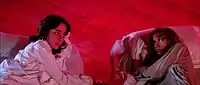 For the majority of the film, Susie appears to be an otherwise normal woman who finds her natural talents rewarded and prized by the coven.[8] As the film progresses into its final act, however, it is revealed that Susie is in fact Mother Suspiriorum, one of the Three Mothers whom the coven exalts.[8] Film Crit Hulk, a pseudonymous writer for The New York Observer, interprets Susie's character arc as the discovery of her shadow self: "Initially she seems just a fresh-faced girl from Ohio, eager to make strides into this esteemed dance company. But her shadow self is soon awoken, which we are meant to fear. Susie unleashes her libido as the rapturous demon below claws at the floor. She turns deeply sexual, almost becoming carnal as she writhes to the ground."[10] Similarly to Goldberg, they interpret Susie's unveiling of herself as Mother Suspiriorium to be messianic in nature, as she eradicates the corrupted Mother Markos and the loyal followers who idolize her.[10] Goldberg reads Susie's destruction of Markos and her followers as retribution for their abuse of power: