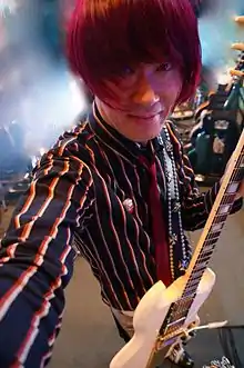Takumi Matsuda (松田卓己, Matsuda Takumi), known as "Fire" professionally, is a bass guitarist born May 25, 1970, in Hirakata.[11] His professional career began in 1997 with the band Super Trapp, with whom he released two albums and five singles via Sony BMG. He has since recorded and toured with many acts including Dragon Ash.